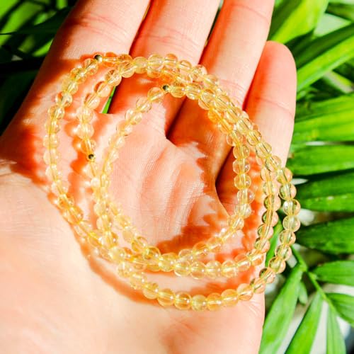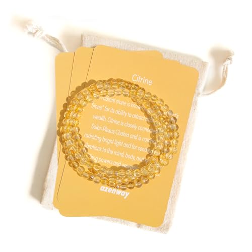 Azenway - سوار كريستال علاجي مشحون - احجار كريمة طبيعية 4 ملم مع خرز مملوء بالذهب عيار 14 قيراط لا يسبب الحساسية، حبل مطاطي، مجوهرات شبه ثمينة للنساء والرجال