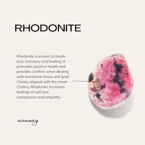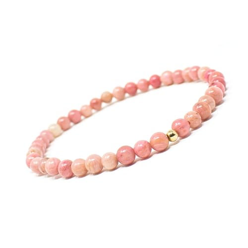 Azenway - سوار كريستال علاجي مشحون من الرودونيت - احجار كريمة طبيعية 4 ملم مع خرز مملوء بالذهب عيار 14 قيراط، حبل مطاطي، مجوهرات شبه ثمينة للنساء والرجال (رودونيت، مقاس M)