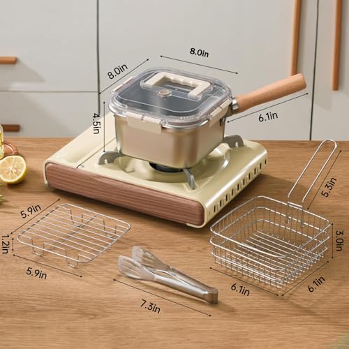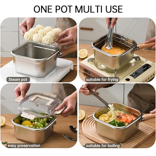 Azonee - وعاء قلي عميق من الستانلس ستيل بسعة 2.5 لتر مع سلة من ازوني | وعاء قلي صغير محمول بمقبض قابل للفصل وشاشة فلتر الزيت وغطاء، متعدد الوظائف للبطاطس المقلية والدجاج والاواني المدمجة في الاماكن المغلقة