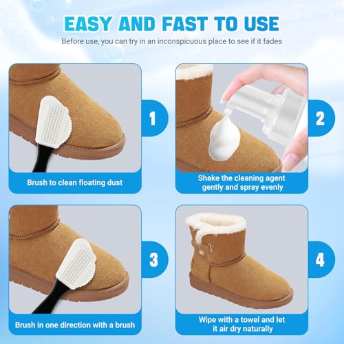 - 【سهلة الاستخدام】مجموعة تنظيف الأحذية الخاصة بنا سهلة الاستخدام للغاية، ما عليك سوى رش مجموعة تنظيف الأحذية الرياضية على حذائك، وفركها بلطف بفرشاة ذات شعيرات ناعمة، ثم امسحها لتنظيفها. مثل الأحذية أو السترات أو الأدوات المنزلية المصنوعة من جلد الشمواه. ضعيه على الجلد واستعيدي قوامه الأصلي.