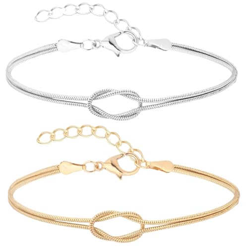 Azonee - اساور ذهبية للنساء والازواج من ازوني - سوار عقدة الحب مطلي بالذهب عيار 14 قيراط، سوار صداقة انيق قابل للتعديل، مجوهرات للابد هدية للنساء (قطعتان)