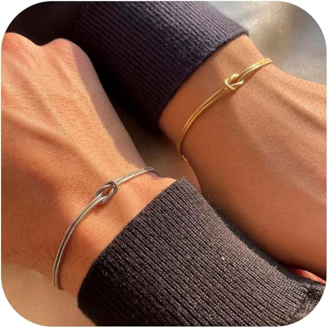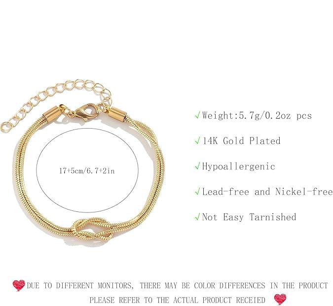 - 【أساور ذهبية للنساء】أساور عقدة الحب هذه هي الخيار الأمثل للأزواج الذين يبحثون عن هدية فريدة وذات مغزى. ترمز إلى الحب والصداقة الأبدية، فهي طريقة أنيقة للتعبير عن اتصالك وخلق ذكريات دائمة معًا.