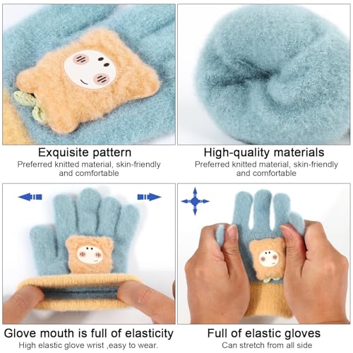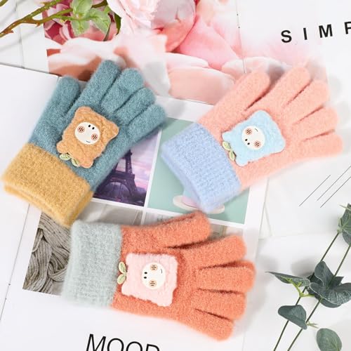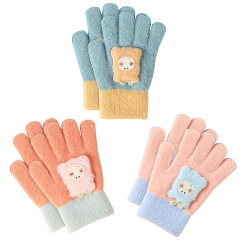 Azonee - قفازات شتوية للاطفال من ازوني، 3 ازواج من القفازات السحرية المحبوكة القابلة للتمدد، قفازات شتوية حرارية كاملة الاصابع للاولاد والبنات، قفازات محبوكة دافئة بطبقة مزدوجة للارتداء اليومي في الشتاء