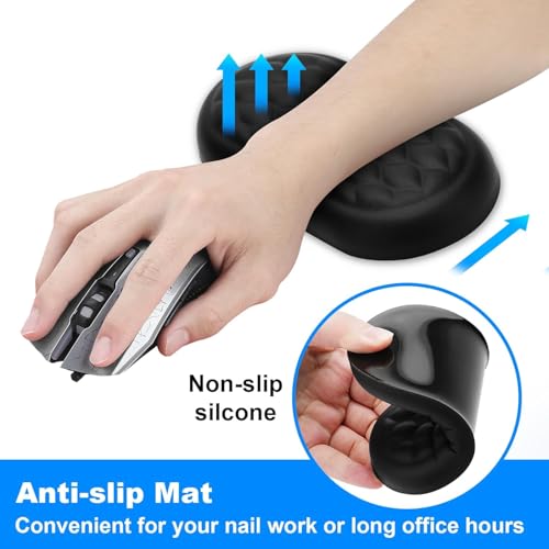 - ️【تخفيف الألم】 مصممة بمبادئ مريحة، تتوافق وسادة المعصم الخاصة بنا بشكل مثالي مع معصمك وساعدك. تعمل فتحات التدليك على السطح على تخفيف الضغط والتعب بشكل فعال في المعصم والمرفق، مما يعزز الراحة العامة أثناء الاستخدام.