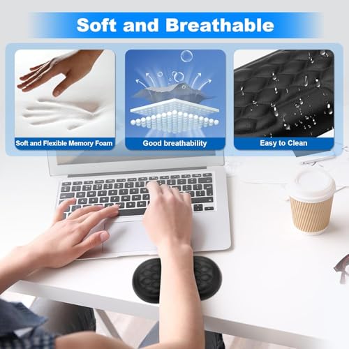 Azonee - مسند معصم مريح للماوس والكيبورد للمكتب من ميموري فوم، وسادة كوع جلد للمكتب غير قابلة للانزلاق للألعاب والكمبيوتر واللاب توب من ازوني