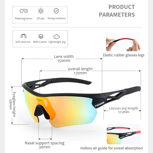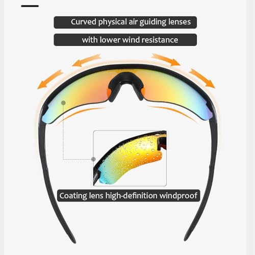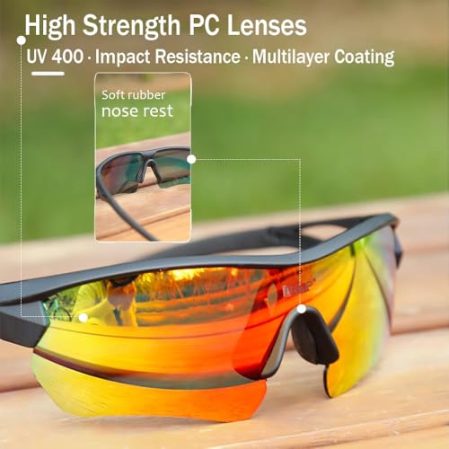 Azonee - نظارة شمسية مستقطبة للدراجة من ازوني، تحمي من الاشعة فوق البنفسجية، نظارات شمسية رياضية لركوب الدراجات للرجال والنساء، 5 عدسات قابلة للتبديل، خفيفة الوزن، متينة، مثالية للانشطة الخارجية