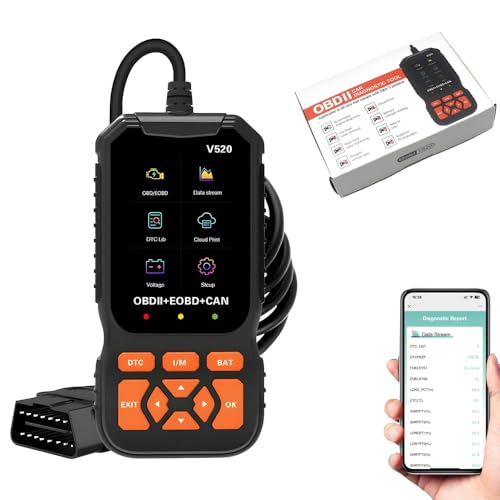 Azonee - جهاز تشخيص وفحص حالة سيارة V520 بنظام OBD2، جهاز قارئ رموز سيارة محسن لفحص السيارة والمحرك وقراءة/مسح رمز الخطأ من ازوني (اللغة العربية غير مضمونة)
