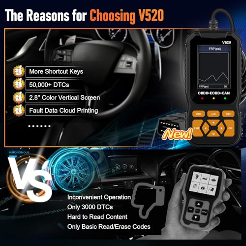 - 🔋【مزود بـ 35901 رمز عطل مدمج】 - يأتي جهاز فحص السيارات V520 مزودًا بعدد مذهل من 35901 رمز عطل مدمج، وهو عدد أكبر بكثير من العدد القياسي البالغ 3000 رمز، مما يتيح تعرفًا دقيقًا وشاملًا على رموز الأعطال ويسهّل عملية التشخيص لجميع طرازات السيارات.