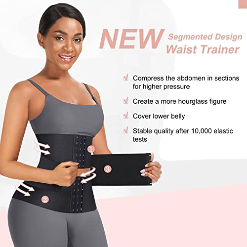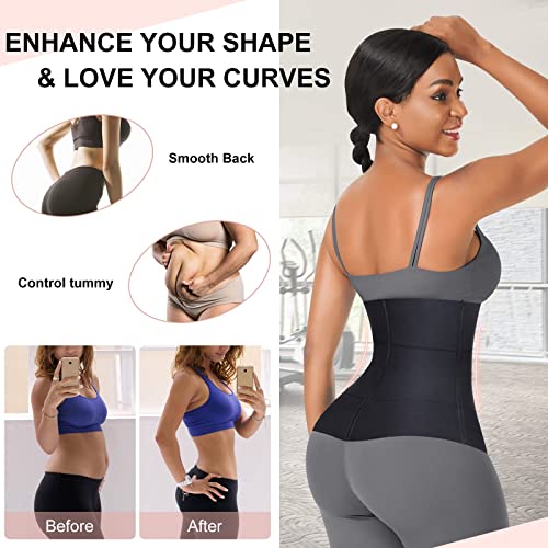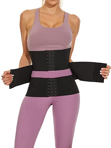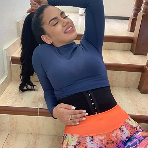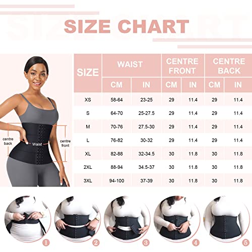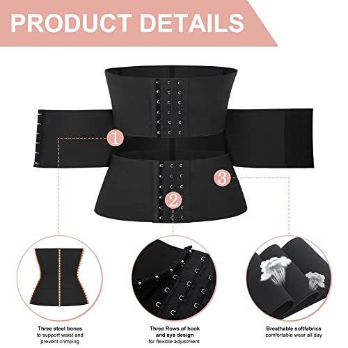 Azonee - مشد خصر رياضي مكون من 3 اقسام تحت الصدر مع 3 عظام ستيل وخطاف وعين للنساء من ازوني - اسود - مشد خصر تحت الصدر من اللاتكس - مقاس M