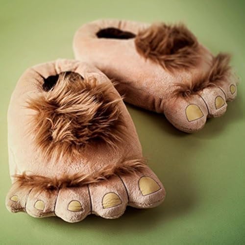 Azonee - احذية قطنية شتوية من ازوني، شبشب قطيفة، شبشب قطيفة بنمط رجل بري رترو مضحك، شبشب قطني مخملي دافئ للمنزل من هوبيت، شبشب منزلي دافئ مبتكر للمراهقين والبالغين (مقاس واحد)