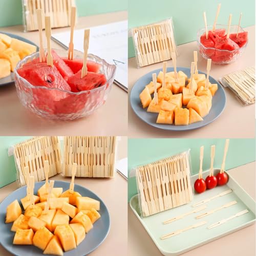 - 【استخدام متعدد الاستخدامات】 بالإضافة إلى استخدامها كأعواد فاكهة، يمكن استخدام شوك الخيزران هذه أيضًا كشوك للسلطة أو شوك الحلوى أو أسياخ المقبلات، مما يلبي مجموعة متنوعة من احتياجات الطهي والمناسبات. مثالية لحفلات الزفاف وأعياد الميلاد والكوكتيلات والبوفيهات والنزهات وما إلى ذلك.