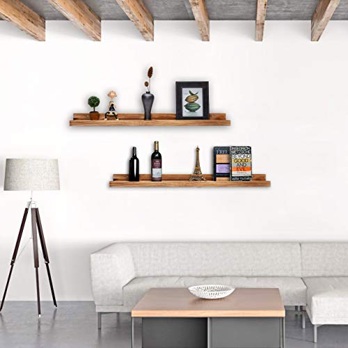 AZSKY - مجموعة رفوف معلقة من الخشب، بتصميم ريفي مزود بحواف، تعلق على الحائط،لكتب الأطفال والصور والكتب ولتنظيم التوابل في المطبخ، من قطعتين، 60 سم، من ازسكاي