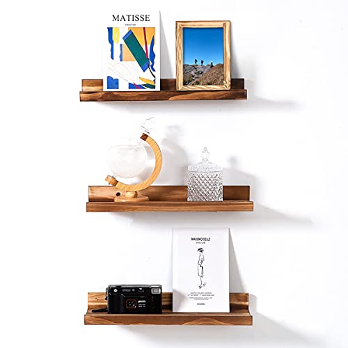 AZSKY - مجموعة رفوف كتب تعلق على الحائط، من الخشب بتصميم ريفي مزود بحواف، للكتب والصور، وللتخزين في الحمام أو توابل المطبخ ولغرف نوم الأطفال، من 3 قطع، 60.9 سم، من ازسكاي