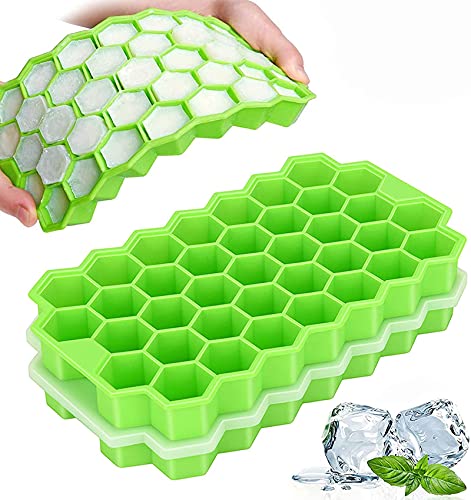 Azyh - صواني مكعبات ثلج للفريزر بغطاء، قالب سيليكون بغطاء وشبكة بـ 37 فتحة، سهلة التحرير وقابلة لإعادة الاستخدام، 74 قطعة مكعبات ثلج صغيرة لقهوة مثلجة وكوكتيل وعصائر وشوكولاتة وحساء وطعام من ازيه، عبوتان