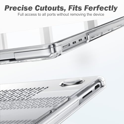 - 【بدون قيود:】مصنوعة من البلاستيك الصلب الشفاف عالي الجودة مع قوة تأثير عالية؛ الفتحات الدقيقة للحافظة تجعل الكيبلات أو المحولات مدفوعة بالكامل. الغطاء السفلي مع تصميم فتحات التهوية يمنع ارتفاع درجة الحرارة من أجل تهوية كاملة. 4 أقدام مطاطية مرتفعة تحافظ على اللاب توب الخاص بك ثابتًا في مكانه. تصميم سهل التركيب يجعل من السهل ارتداؤه أو خلعه