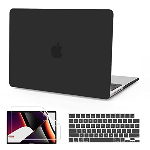 B BELK - جراب لاب توب بلاستيك شفاف متوافق مع ماك بوك برو 14 بوصة بميزة Touch ID إصدار 2022 2021 موديلات A2442 /M1 برو/ماكس + غطاء للوحة المفاتيح + شاشة حماية لماك برو 14 بوصة باللمس من بي بلك