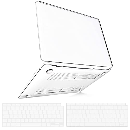 B BELK - بي بيلك حافظة لاب توب صلبة من البلاستيك + 2 شاشة حماية متوافقة مع اجهزة ماك بوك اير 13 بوصة 2022 2021 و2020 2019 2018 A2337 M1 A2179 A1932 بشاشة ريتينا تعمل باللمس وتاتش اي دي، شفافة