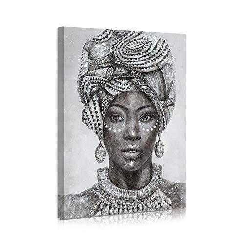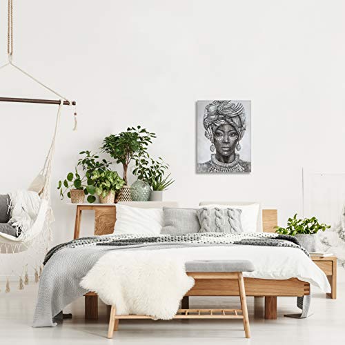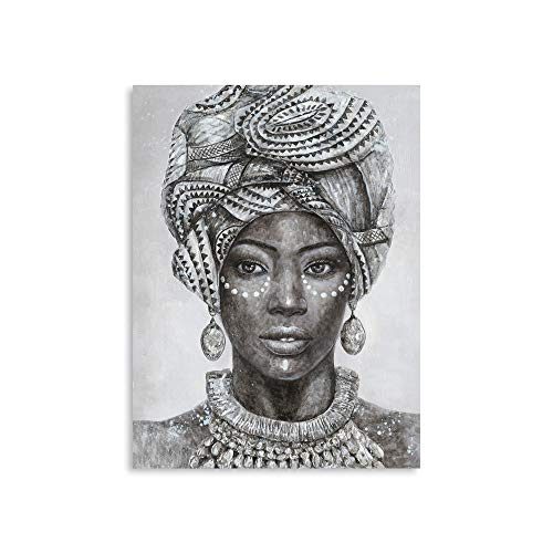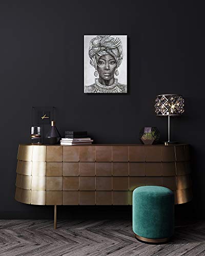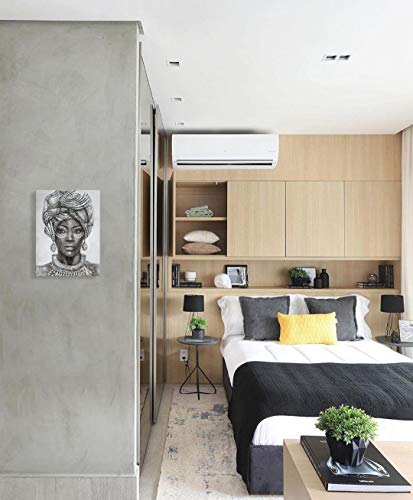 B BLINGBLING - ديكور حائط بتصميم فتاة افريقية امريكية ترتدي عمامة وسلسلة وحلق عتيقة لديكور المنزل وغرفة النوم باطار سهل التعليق لوحة 12 بوصة × 16 1 من بي بلينج متعدد الألوان