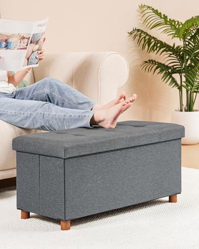 B FSOBEIIALEO - مقعد تخزين مع صينية من بي فسوبيياليو، مسند قدم عثماني بأرجل خشبية، مكعب تخزين وجلوس من الكتان رمادي اللون، 76 سم