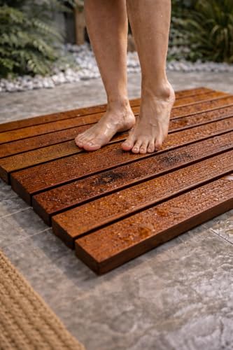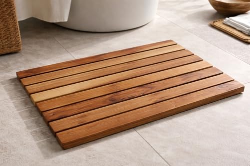 B.KIND & BEYOND - سجادة حمام مضادة للانزلاق من خشب الساج، سجادة للاستخدام الخارجي والداخلي، سجادة حمام، سجادة حمام السباحة، متانة وقوة (85 × 50) من بي كايند آند بيوند