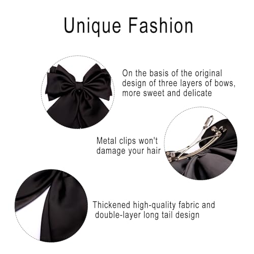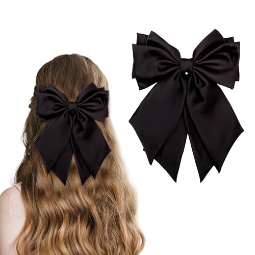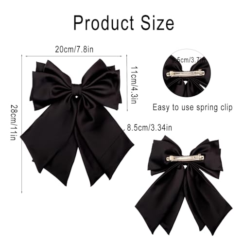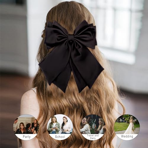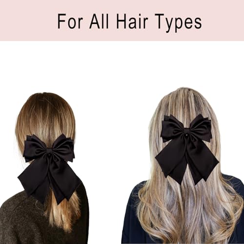 B.PHNE - ربطة شعر على شكل فيونكة كبيرة للنساء والبنات، مشبك شعر معدني، اكسسوار شعر باللون الأسود، فيونكة أنيقة لتزيين الشعر من بي فن (قطعة واحدة)
