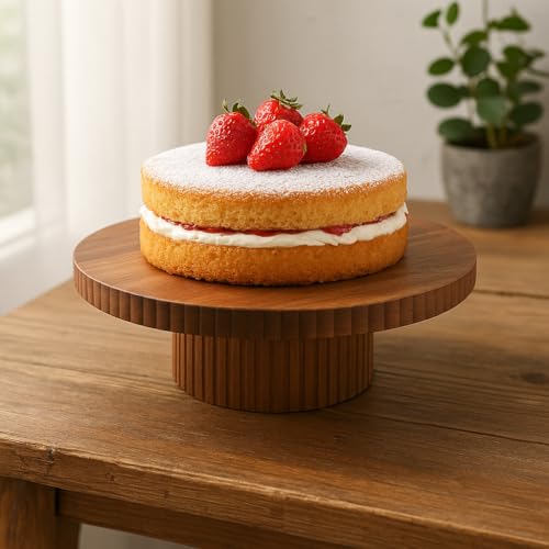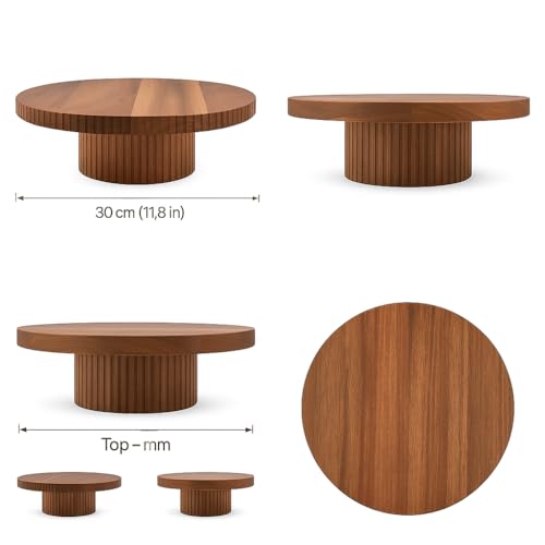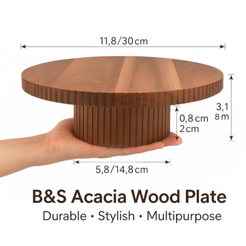B&S - بي&اس حامل كيك من خشب الاكاسيا - طبق دائري 30 سم بقاعدة متينة (ارتفاع 10 سم)، حامل تقديم حلوى خشبي ريفي للكيك والمعجنات والفواكه وعروض الحفلات