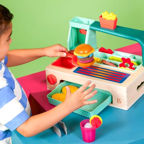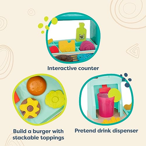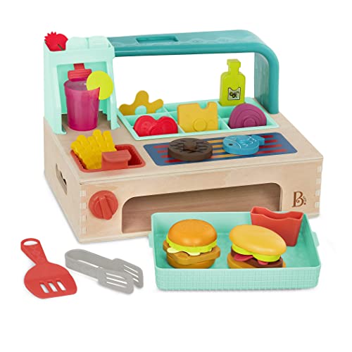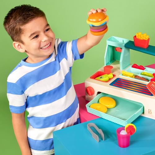 B. toys - مجموعة ألعاب برجر تظاهرية من بي تويز، ملحقات لعب طعام ولعب الأدوار، ألعاب طبخ للأطفال، 3 سنوات فما فوق، لتصبح شيف صغير، مجموعة لعب بيلد-ايه برجر