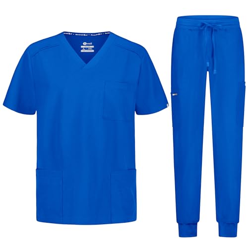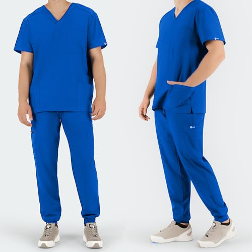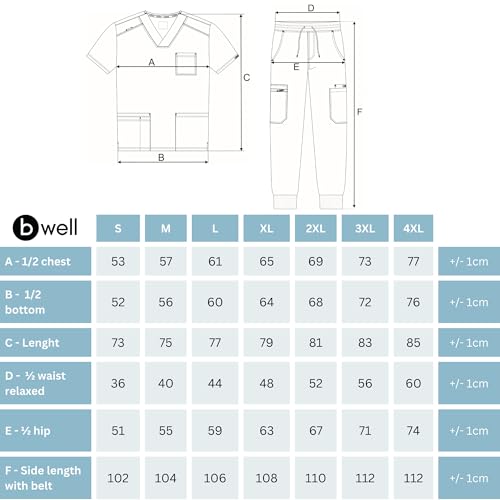 B-well - بي-ويل طقم ملابس طبية للرجال من ماتيو مكون من تونيك سهل الارتداء + بنطلون للركض، زي طبي، ملابس عمل طبية مع ايلاستين
