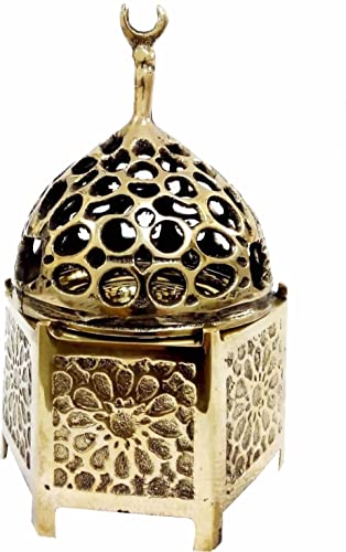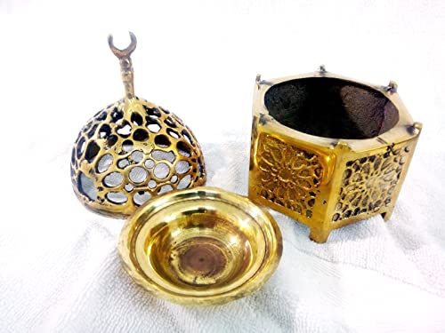Generic - B217 مبخرة نحاس أصفر سبك عربي بغطاء مزخرف وطبق داخلي من النحاس