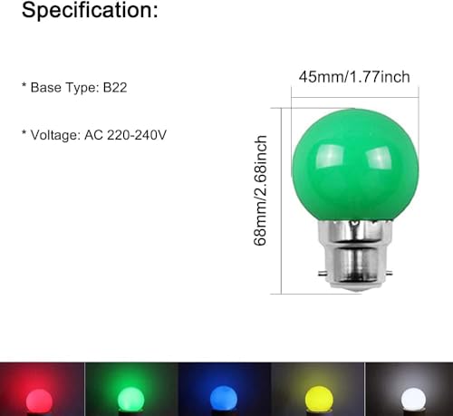 Generic - مصباح LED B22 بقدرة 1 واط ملونة , مصباح كروي صغير للشرفة الخارجية ، للأضاءه الليلية وللزينة والحفلات (أخضر)