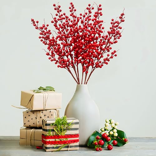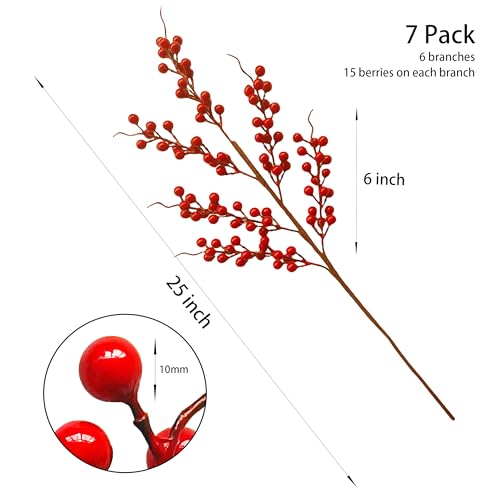 Baaxxango - سيقان توت صناعية من باكسيانجو، تصميم توت هولي كريسماس، لتزيين شجرة الكريسماس والمهرجانات والحرف اليدوية، ديكور المنزل لون أحمر وبورجندي، مقاس 63.5 سم (عبوة من 7 قطع)