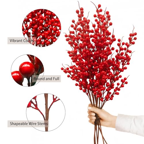 - الميزة: سيقان التوت الصناعية باللون الأحمر سهلة الاستخدام كديكور لأن الفروع قابلة للانحناء حسب الرغبة ويمكن إزالة التوت من الفروع وصنعها بنفسك وفقًا لأفكارك الخاصة ويمكنك تشكيلها وترتيبها بسهولة بالشكل المفضل لديك.