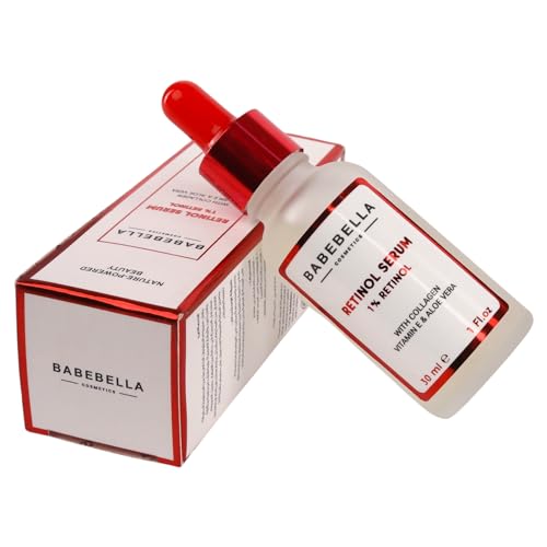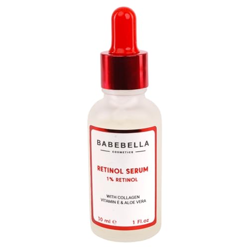 Babebella Cosmetics - سيروم الريتينول سيروم للوجه مكافح للشيخوخة، يساعد على تقليل التجاعيد، وشد البشرة، وترطيبها بعمق، ويعمل على تنعيم الخطوط الدقيقة، تركيبة متقدمة تحتوي على الكولاجين، فيتامين اي، والالوفيرا، 30 مل