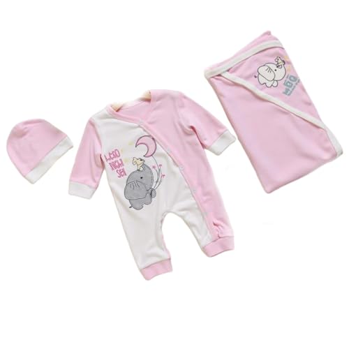 Generic - طقم سالوبيت قصير قطن للاطفال مكون من 3 قطع مع بطانية وقبعة 2298