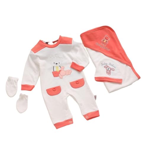 Generic - طقم سالوبيت للأطفال للجنسين، مصنوع من القطن المخلوط، متعدد الألوان رمادي وأصفر وأحمر، بتصميم غير رسمي، مع بطانية وقبعة وقفازات