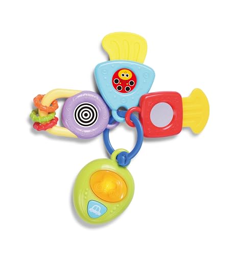 - تصميم تفاعلي: شخشيخة ملونة على شكل مفتاح تتميز بعناصر جذابة متعددة، منها مرآة بنمط حلزوني ساحر وتصميم دعسوقة رائع.