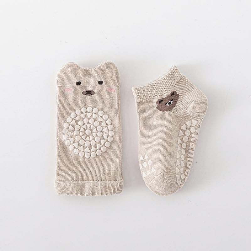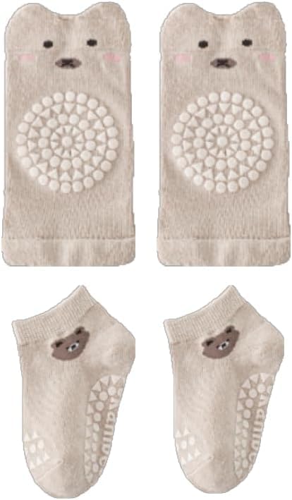 fashion mania - مجموعة وسادات ركبة وجوارب مضادة للانزلاق للاطفال - معدات زحف بطباعة حيوانات للرضع والاطفال الصغار، مصنوعة من القطن الناعم، خامة جيدة التهوية ومريحة (مقاس M)