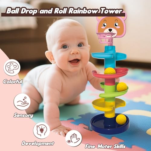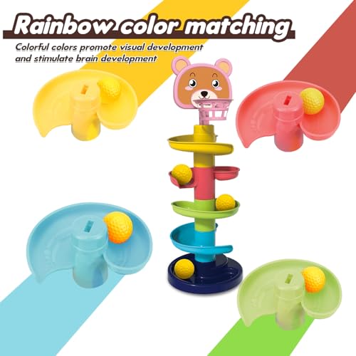 CVARRISE - برج كرات للأطفال - لعبة تعليمية مكوّنة من 6 مستويات مع منحدر للكرات و5 كرات دوّارة، للأطفال من عمر 1 إلى 3 سنوات لتطوير المهارات الحركية والمرح عبر اللعب بالكرات من سي فاريز