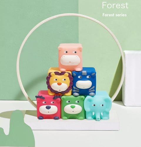 Generic - مكعبات بتصميم حيوانات غابة مناسبة لوقت الاستحمام للأطفال، 6 ألعاب تكديس ملونة، مكعبات تعليمية لوقت الاستحمام للأطفال من عمر 0+ أشهر، ألعاب استحمام آمنة