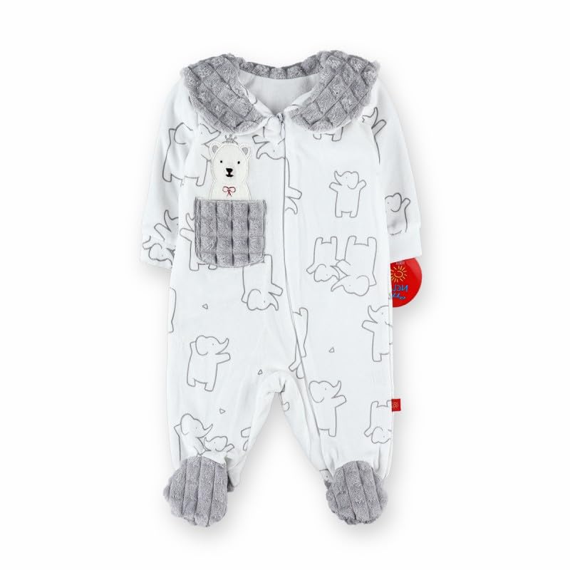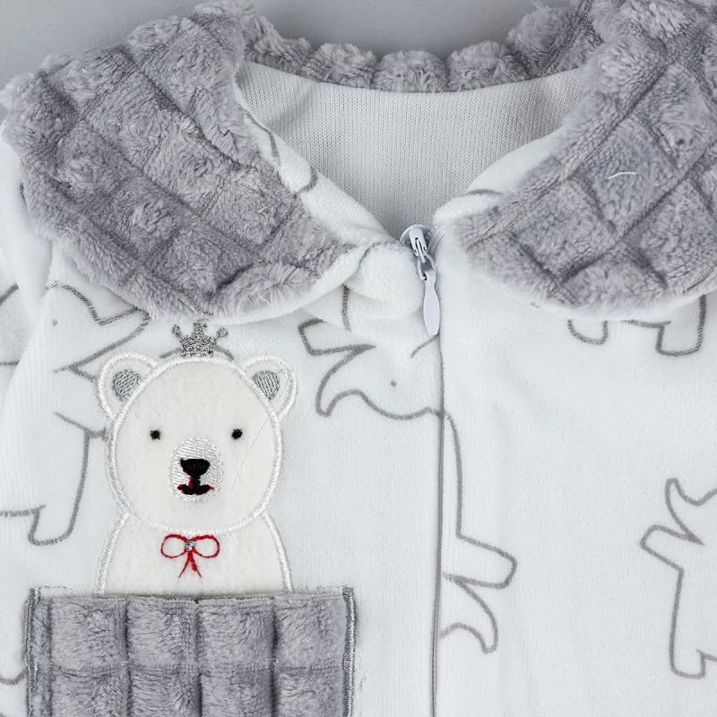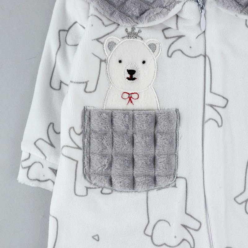 Generic - سالوبيت بغطاء راس بتصميم دب للاطفال البيبي، رمادي، مقاس 3-6 اشهر