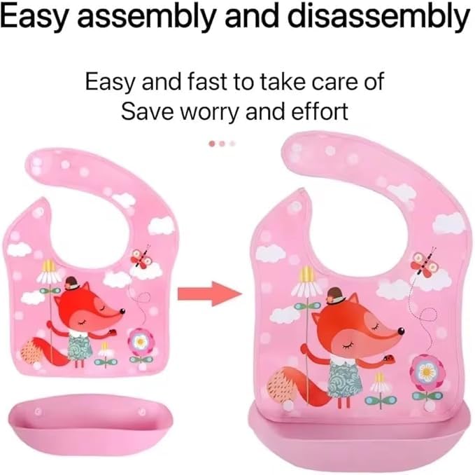 Generic - مريلة أطفال مع طبق سيليكون مقاوم للماء يتغير اللون والشكل - مقاس واحد