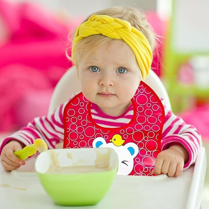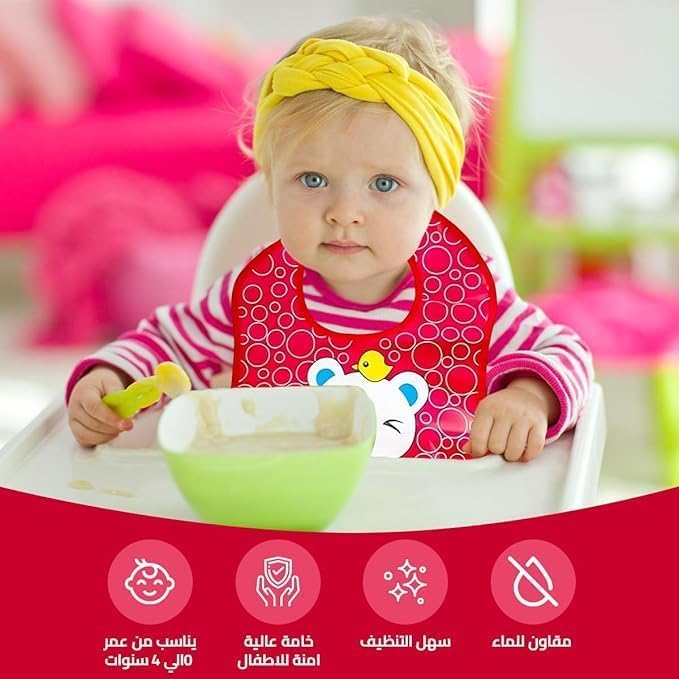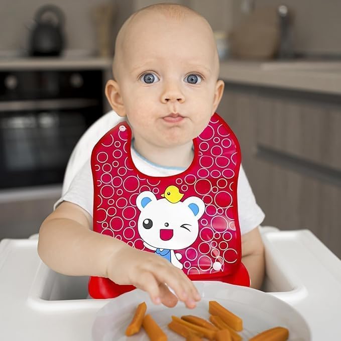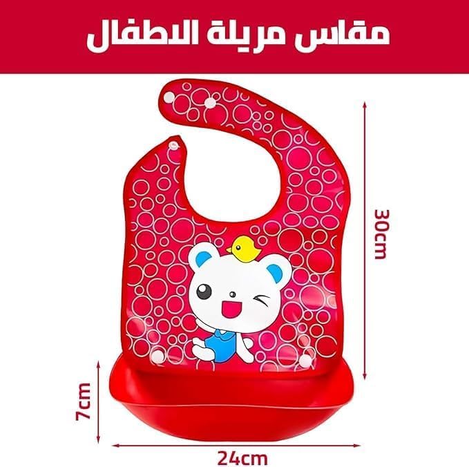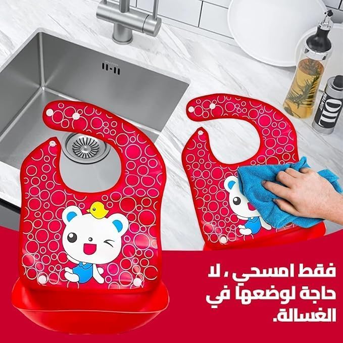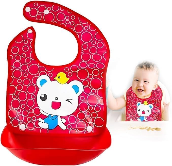 Generic - مريلة أطفال مع جيب من السيليكون مقاومة للماء وقابلة للتعديل بطباعة كرتونية ناعمة خالية من مادة بيسفينول أ وأمنة للاستخدام في غسالة الأطباق وسهلة التنظيف، على شكل قطة، مقاس واحد