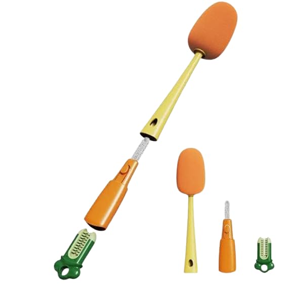 - ✅ 【تصميم متعدد】 يتضمن الطقم فرش صغيرة وكبيرة تنظف جميع أجزاء الزجاجات والأكواب والبيبرونات.