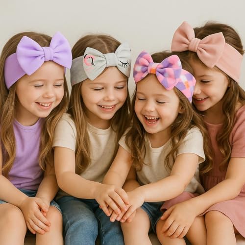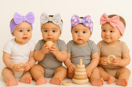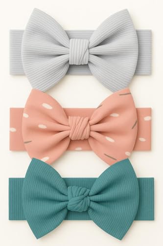 ZECOTEX - عصابة راس على شكل فيونكة للاطفال | مجموعة باندانا ناعمة وقابلة للتمدد من 3 قطع (الوان وانماط عشوائية) (متعددة الالوان، 0-3 سنوات)