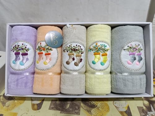 Generic - طقم فوط قطن أطفال مقاس 50x90 سم عدد 5 فوط