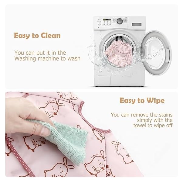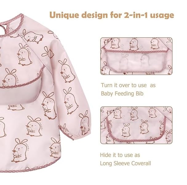 fashion mania - مرايل رضاعة للاطفال باكمام طويلة مقاومة للماء للاطفال من عمر 6 اشهر الى 3 سنوات (ارنب)