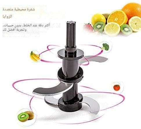 - يتميز المنتج بأداة تقطيع كبسولات متطورة مع أربع شفرات قوية من الفولاذ المقاوم للصدأ قادرة على طحن المكونات الناعمة والصلبة، بما في ذلك مكعبات الثلج والفواكه المجمدة، مما يجعلها متعددة الاستخدامات للغاية لتحضير الطعام المختلفة.