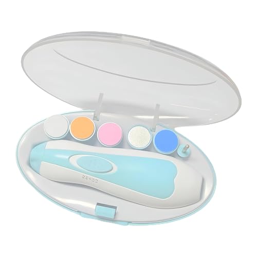 Nutrascience - مبرد اظافر كهربائي صديق للاطفال للعناية باظافر الطفل، قصافة اظافر امنة مع 6 رؤوس قابلة للاستبدال، مجموعة مبرد اظافر لطيف ورائع لحماية اظافر اليدين والاصابع الصغيرة