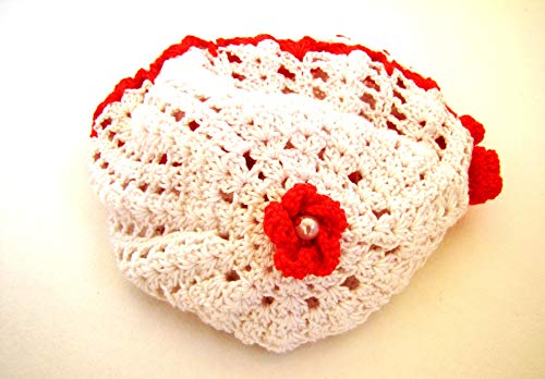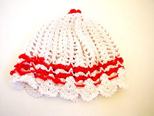 Other - قبعة كروشيه للبنات البيبي - ابيض واحمر، مقاس واحد