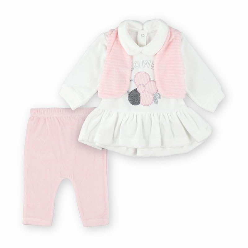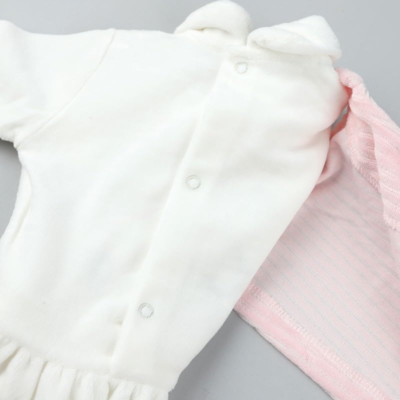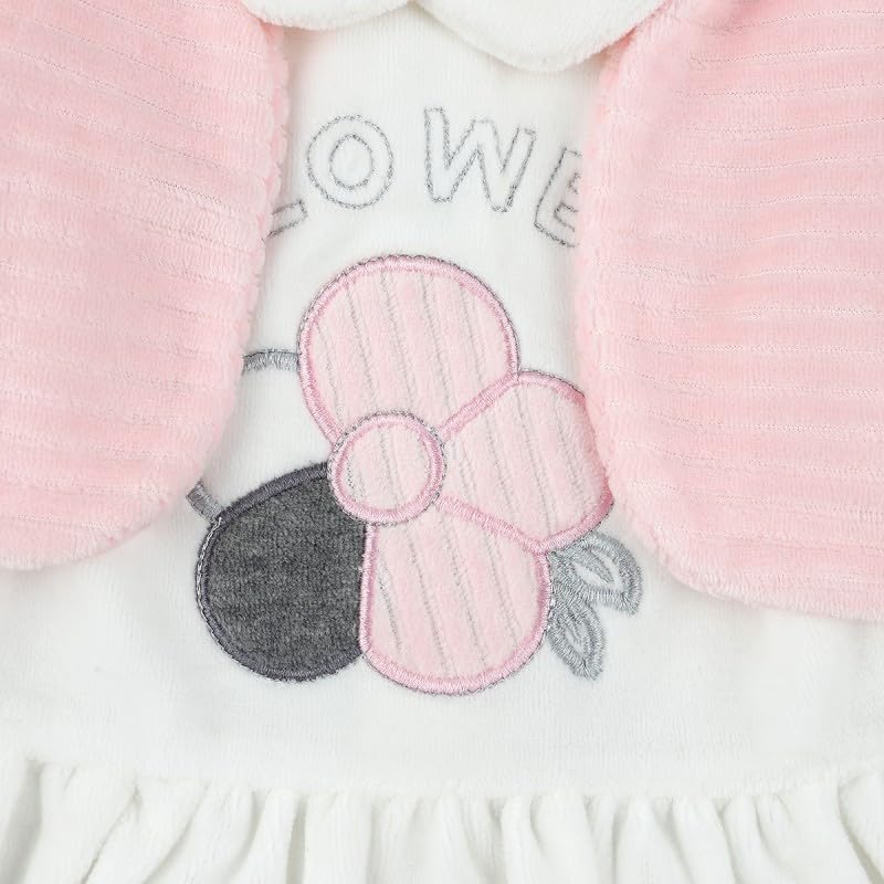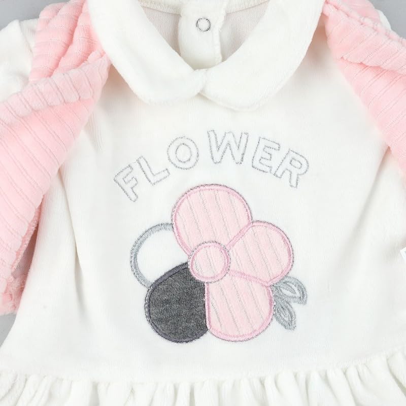 Generic - طقم قطيفة للبنات الصغيرات مكون من قطعتين بتصميم زهور باللونين البينك والابيض | 6-9 اشهر | زهور
